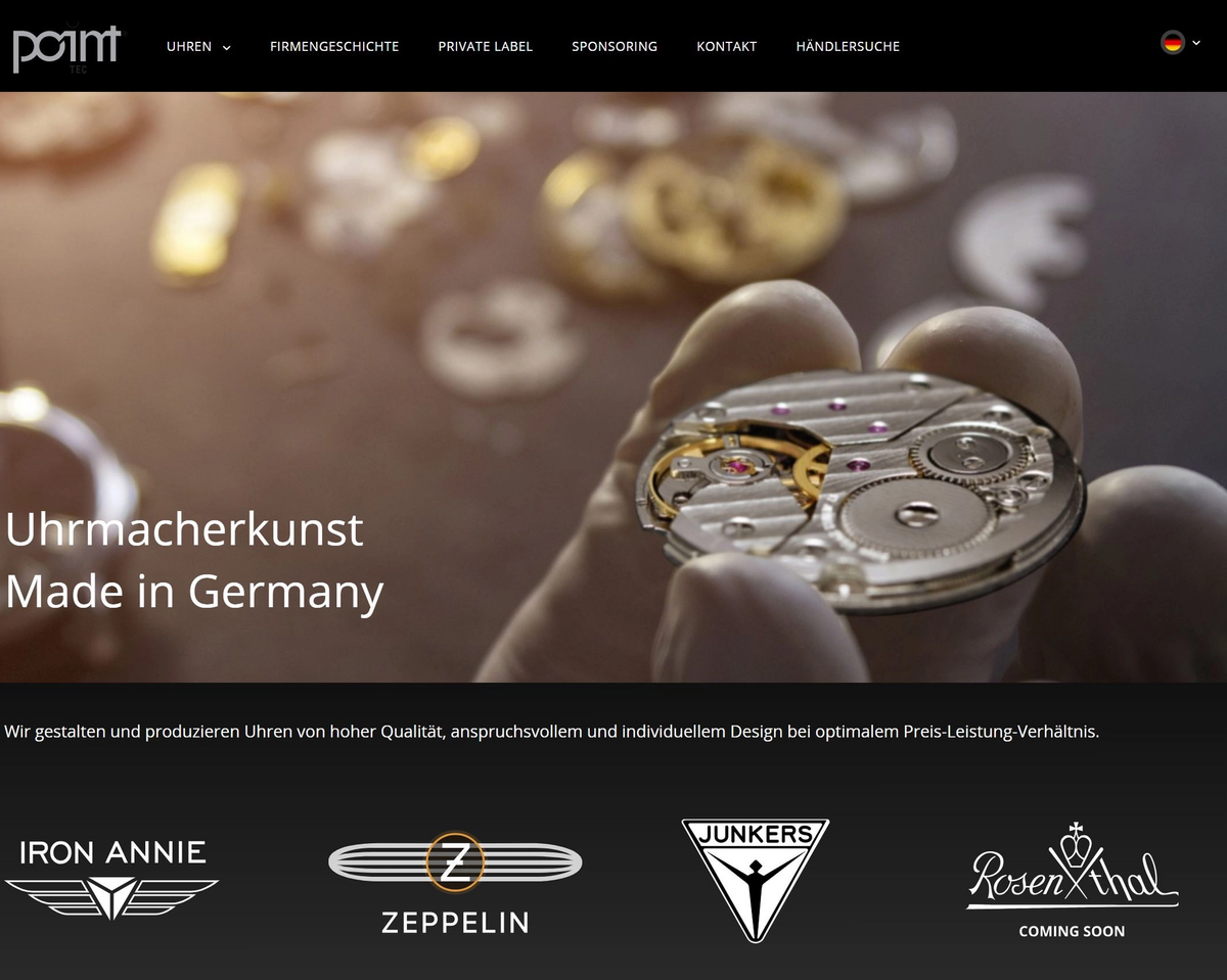 Point Tec zeichnet sich ausdurch die Herstellung von Uhren, die sich durch ein anspruchsvolles, unverwechselbares Design, ein hervorragendes Preis-Leistungs-Verhältnis und eine hohe Produktqualität mit dem Qualitätssiegel MADE IN GERMANY hervorheben.